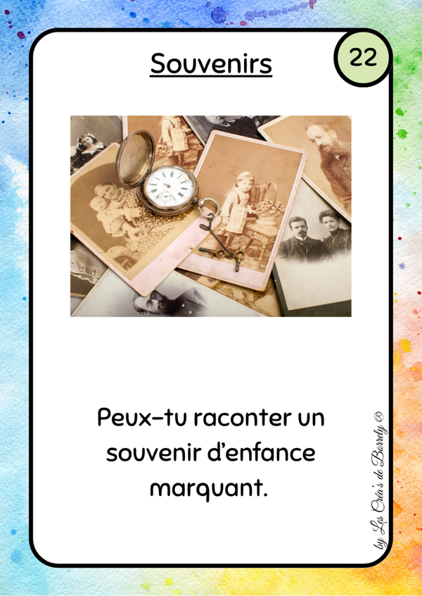 - Stimulation cognitive : les cartes font appel à la mémoire, à l’imagination et à l’émotion,