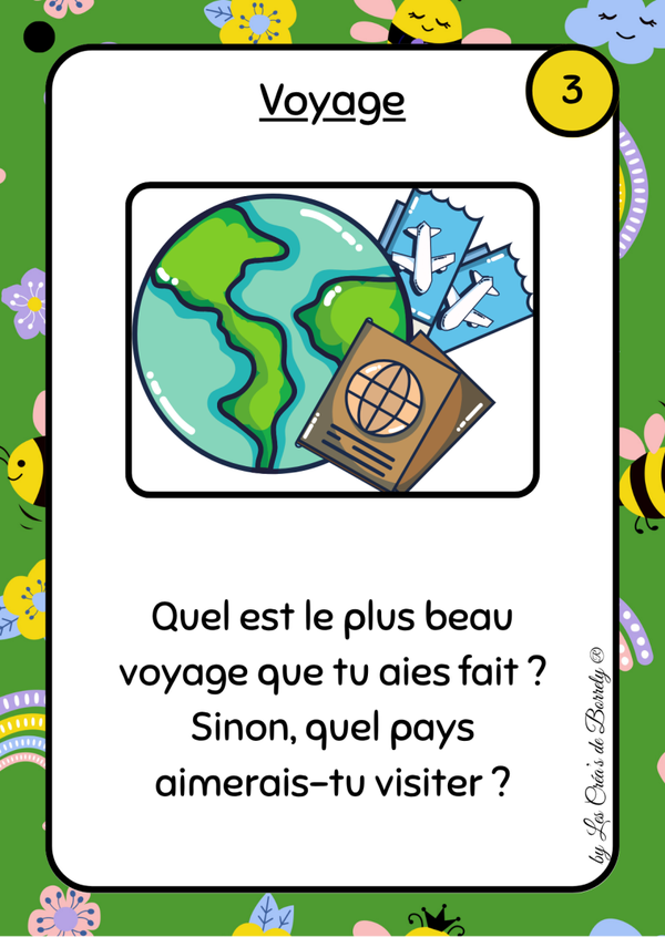 Nos cartes de conversation sont conçues pour les enfants pour créer un lien, encourager la parole et semer des graines de confiance. Parfait pour les familles, enseignants, éducateurs, ... Elles sont à glisser dans un sac pour les vacances, les trajets, les veillées ou les goûters partagés.
