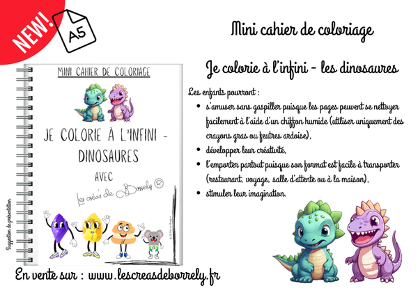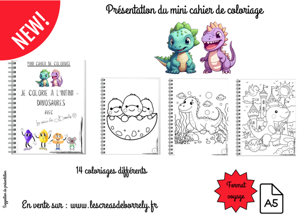 Mini cahier de coloriage - Je colorie à l'infini les Dinosaures.